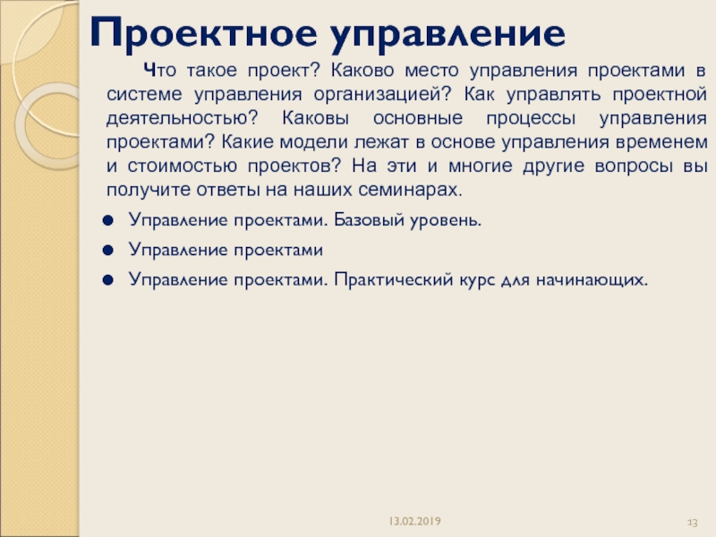 системе управления организацией? Как управлять проектной деятельностью? Каковы основные процессы