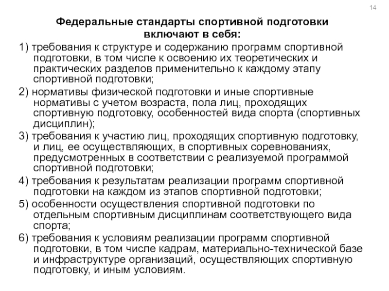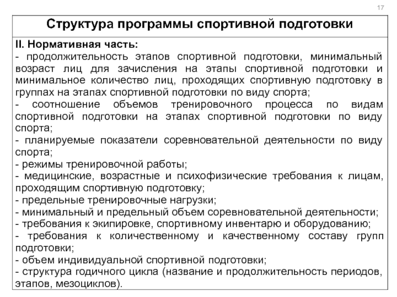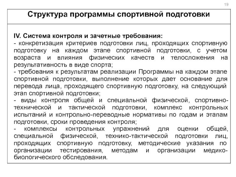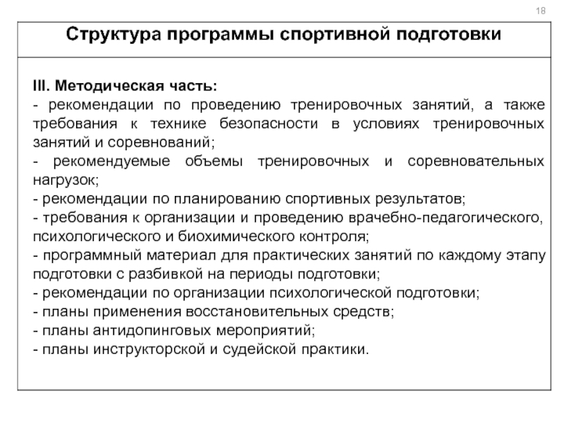Условия, предъявляемые к структуре и содержанию программ спортивной подготовки, в