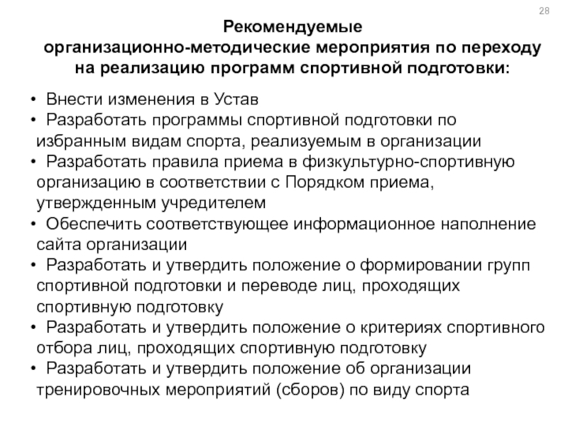 организационно-методические мероприятия по переходу на реализацию программ спортивной подготовки