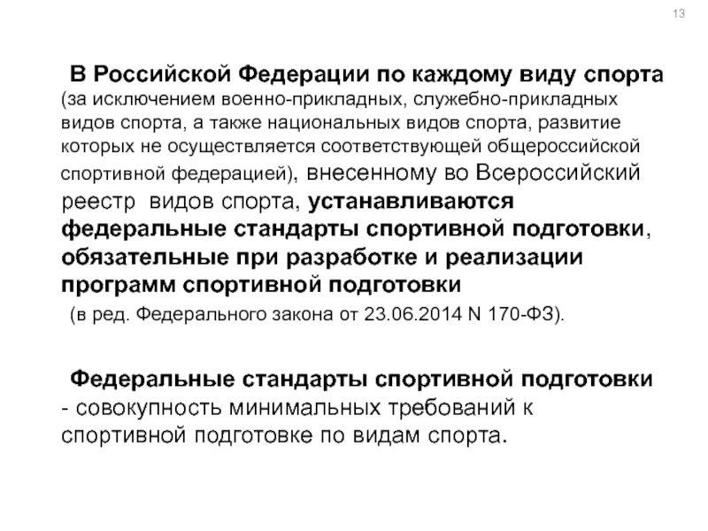 Федеральные стандарты спортивной подготовки - совокупность минимальных требований к спортивной подготовке по видам спорта.