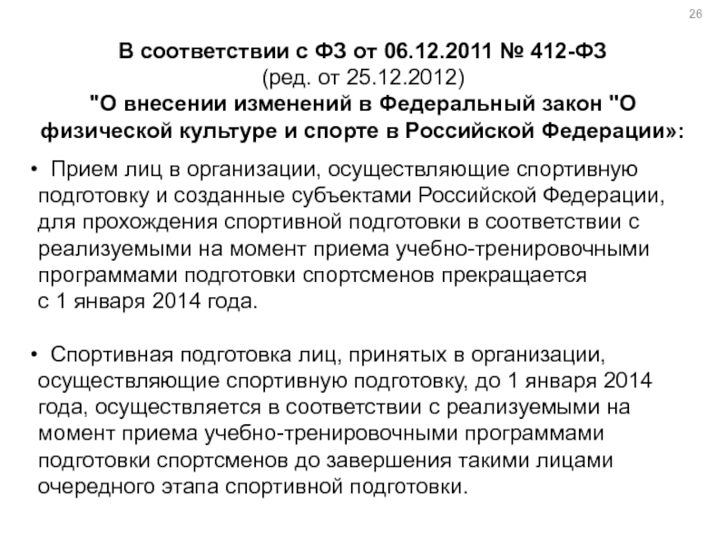 Слайд 26В соответствии с ФЗ от 06.12.2011 № 412-ФЗ