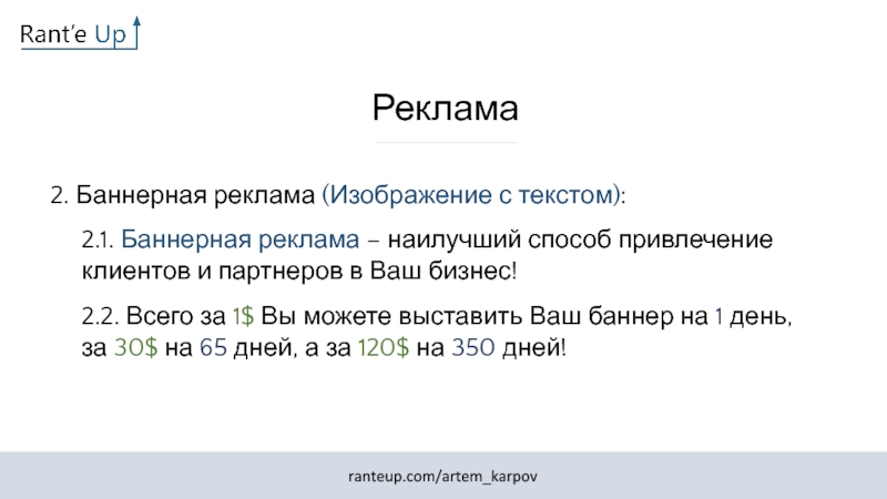 2.2. Всего за 1$ Вы можете выставить Ваш баннер на 1 день,