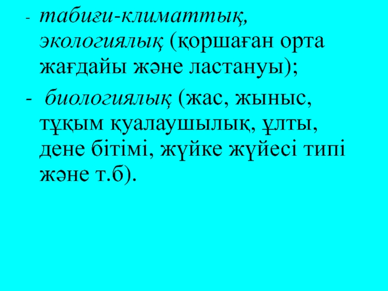 Слайд 17- табиғи-климаттық, экологиялық (қоршаған орта жағдайы және ластануы);