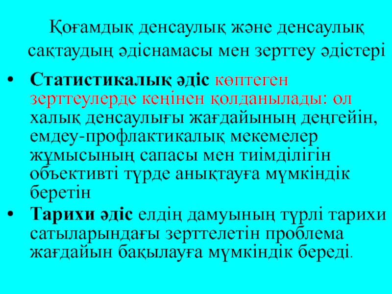 Слайд 14Қоғамдық денсаулық және денсаулық сақтаудың әдіснамасы мен зерттеу әдістері