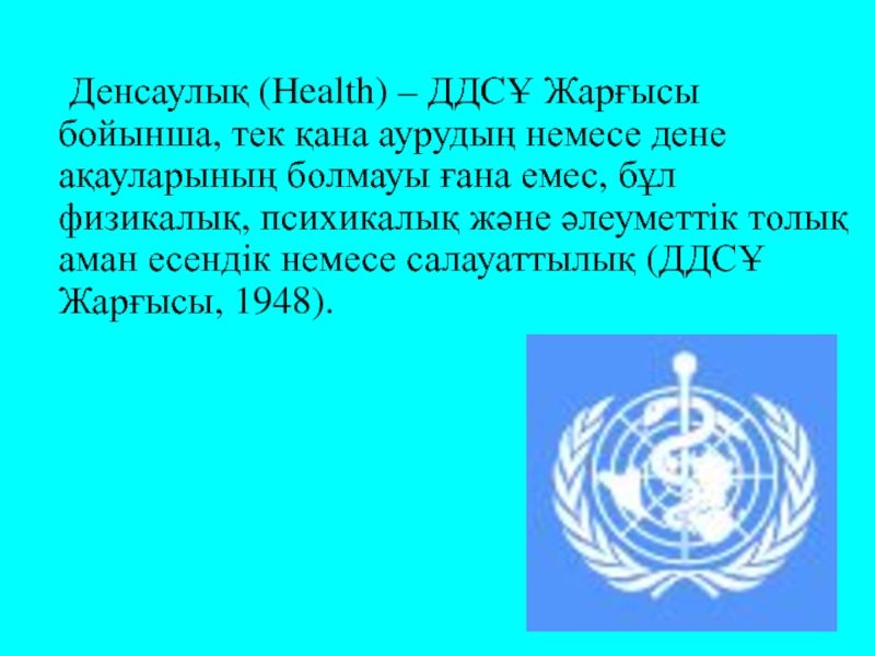 Слайд 5 Денсаулық (Health) – ДДСҰ Жарғысы бойынша, тек қана