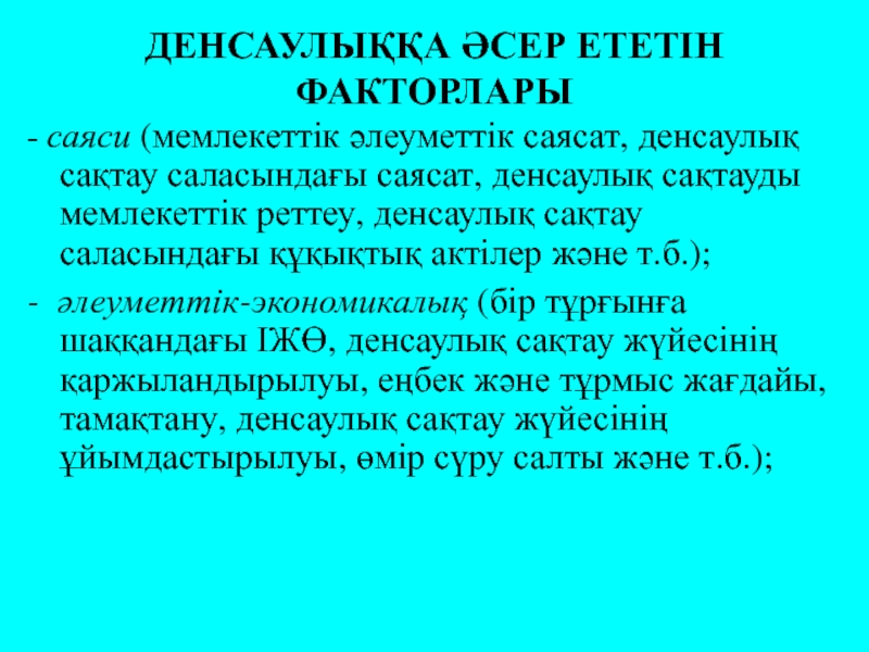 Слайд 16ДЕНСАУЛЫҚҚА ӘСЕР ЕТЕТІН ФАКТОРЛАРЫ