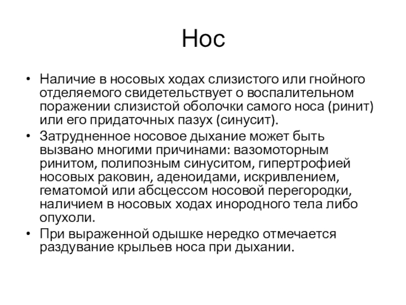 Наличие в носовых ходах слизистого или гнойного отделяемого свидетельствует о