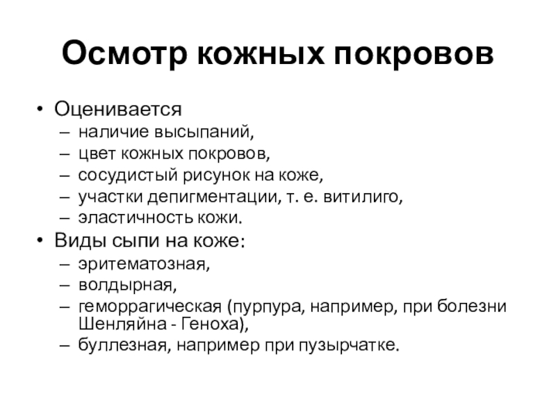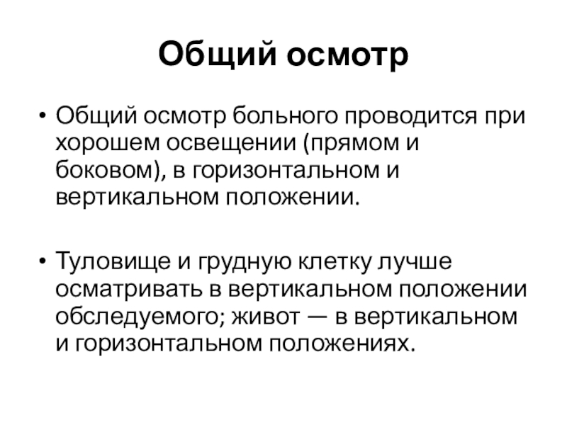 Общий осмотр больного проводится при хорошем освещении (прямом и