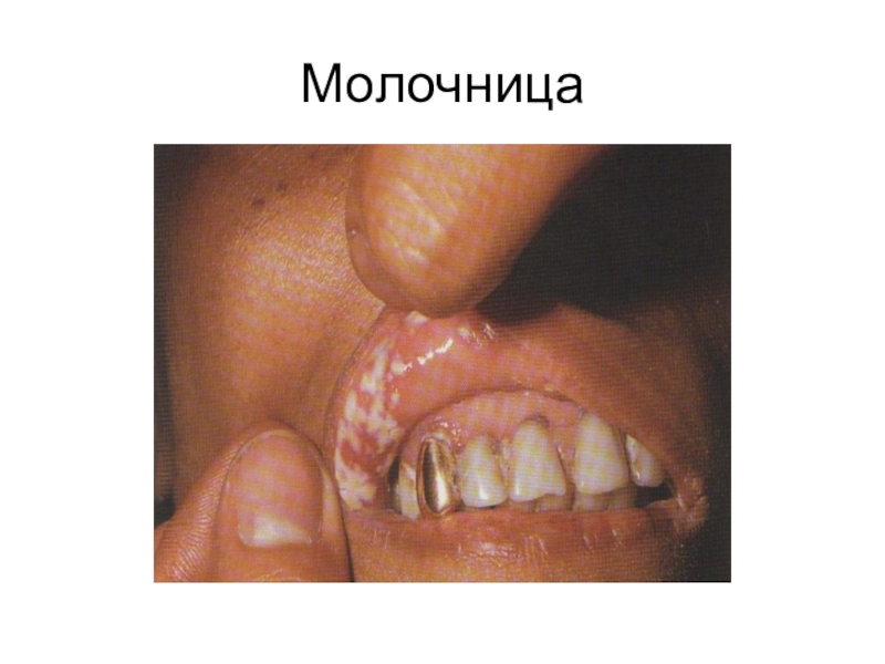 Слайд 39Осмотр языка (видно коричневый налёт)