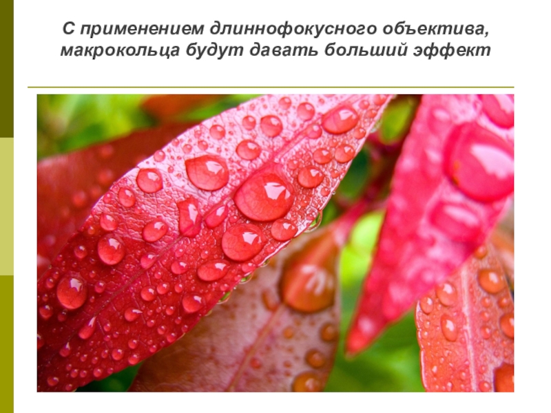 Слайд 67С применением длиннофокусного объектива, макрокольца будут давать больший эффект