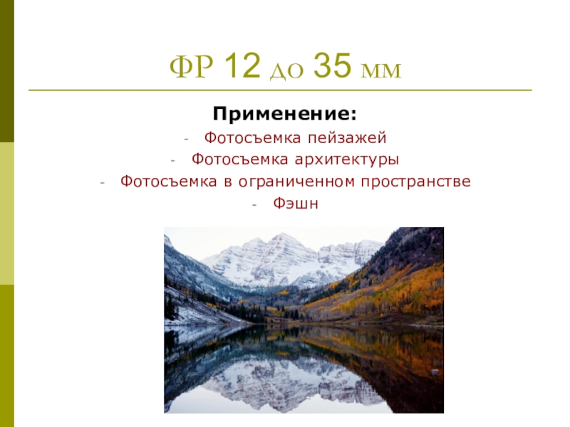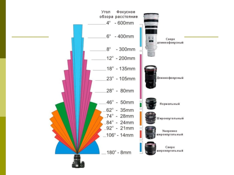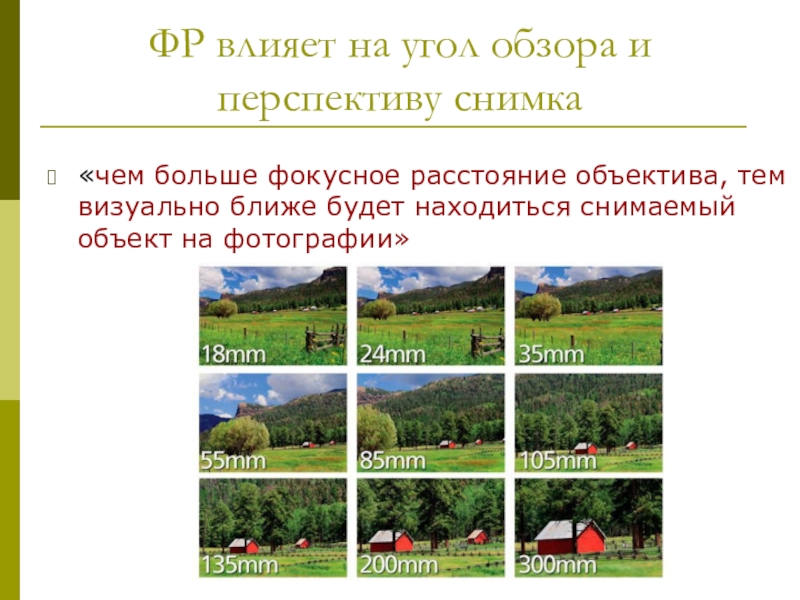 Слайд 13ФР влияет на угол обзора и перспективу снимка