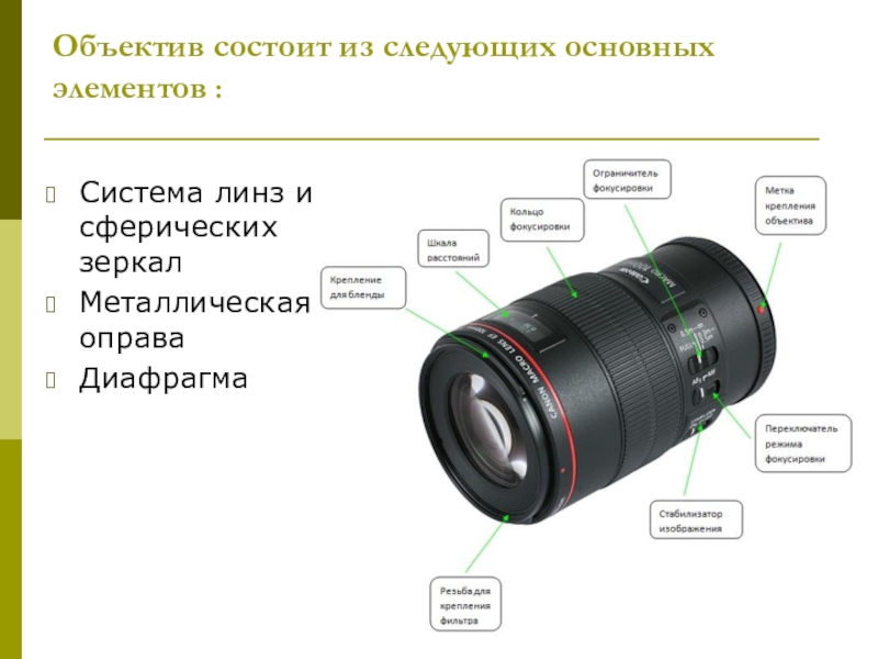 Слайд 4В конструкции современных объективов применяются особые асферические линзы, которые способны