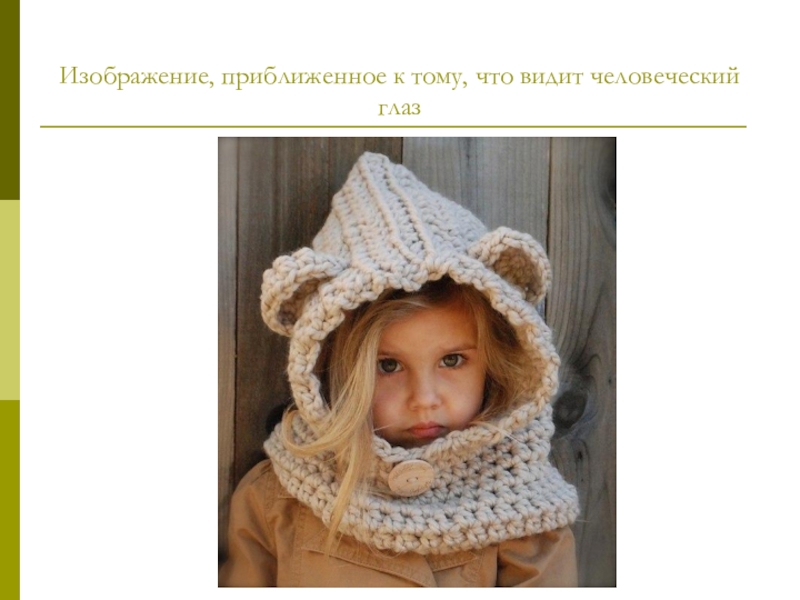 Слайд 40Изображение, приближенное к тому, что видит человеческий глаз