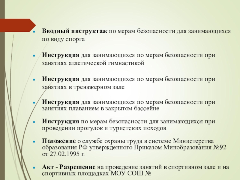 Слайд 11Вводный инструктаж по мерам безопасности для занимающихся по виду спорта