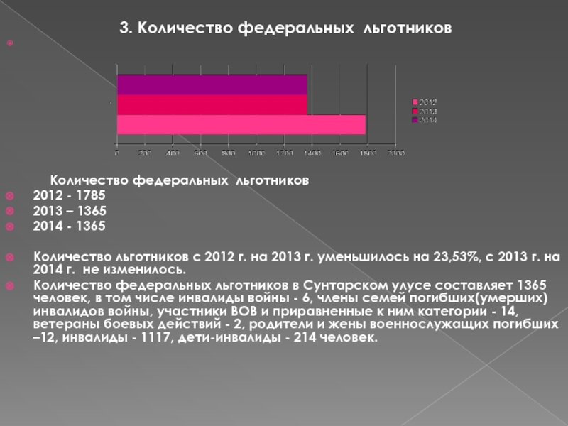 Количество федеральных льготников уменьшился на 420 человек или 31% (всего – 1365 чел.).