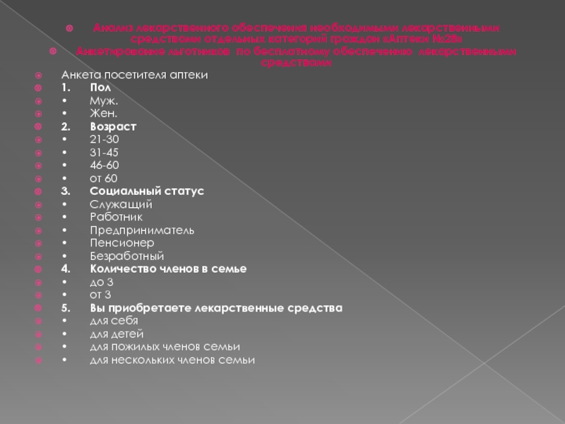Слайд 11Анализ лекарственного обеспечения необходимыми лекарственными средствами отдельных категорий граждан «Аптеки