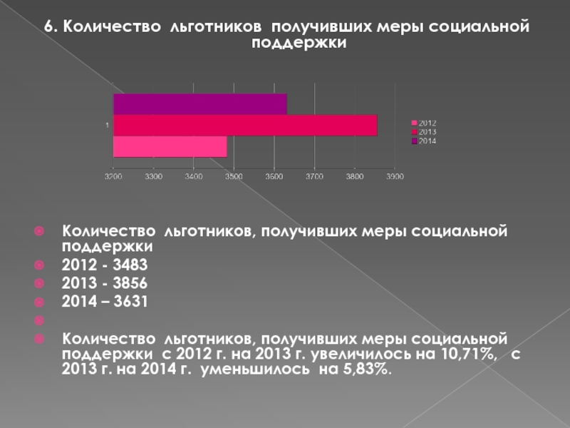 Слайд 226. Количество льготников получивших меры социальной поддержки