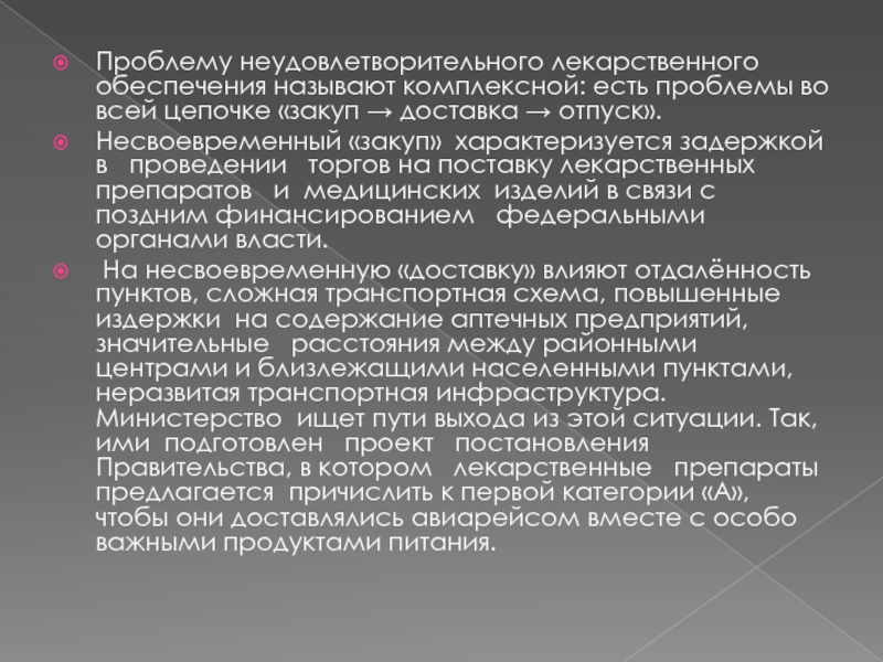 Слайд 10Проблему неудовлетворительного лекарственного обеспечения называют комплексной: есть проблемы во всей