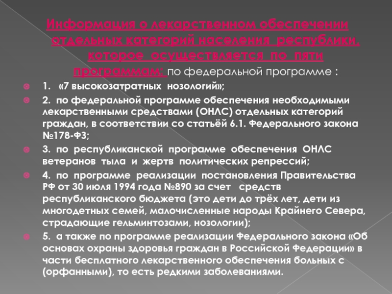 Слайд 8Информация о лекарственном обеспечении отдельных категорий населения республики, которое осуществляется