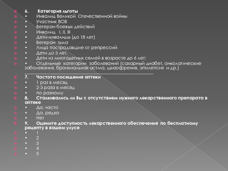 9. Оцените доступность лекарственного обеспечения по бесплатному рецепту в вашем улусе