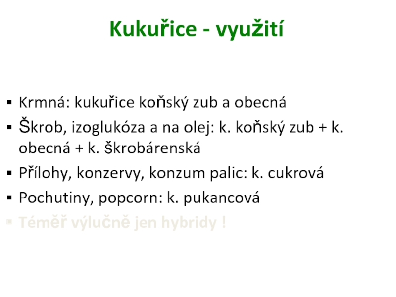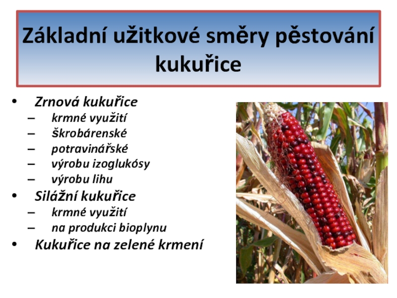 Kukuřice - využití