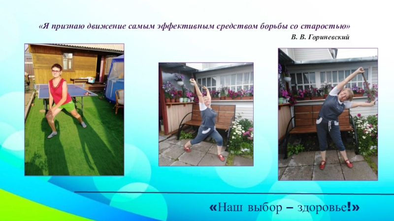 «Наш выбор – здоровье!» «Я признаю движение самым эффективным средством борьбы со старостью»