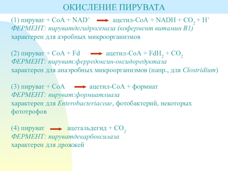 Пути окисления пирувата.