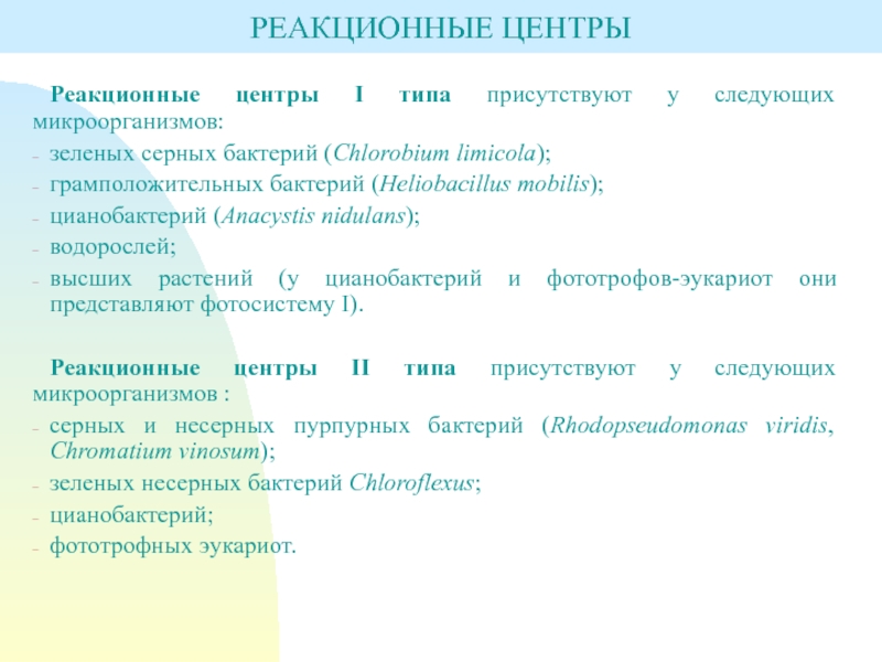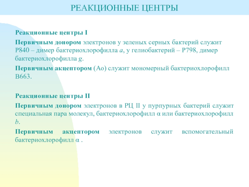 Слайд 48Реакционные центры I