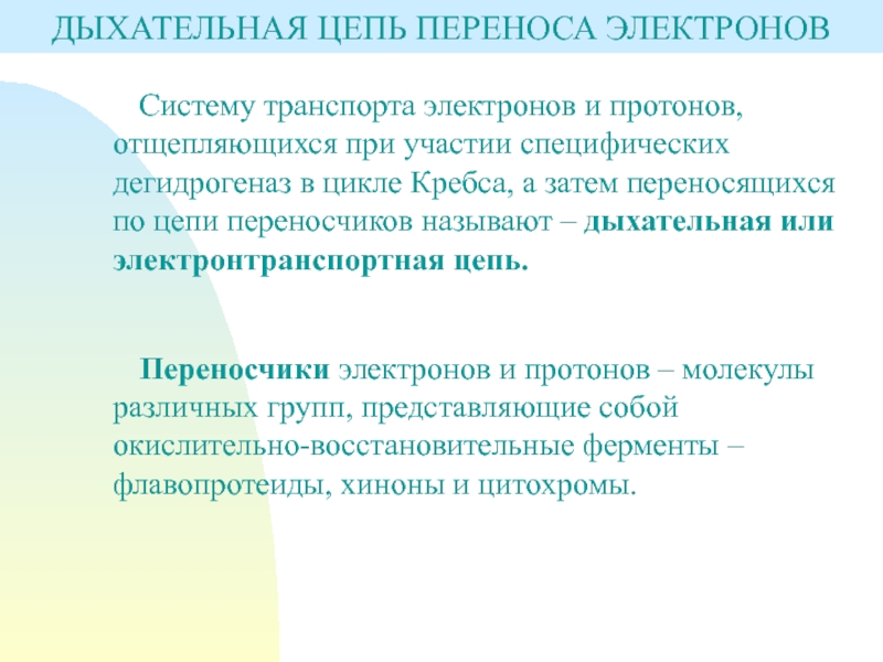 Дыхательная цепь переноса электронов.