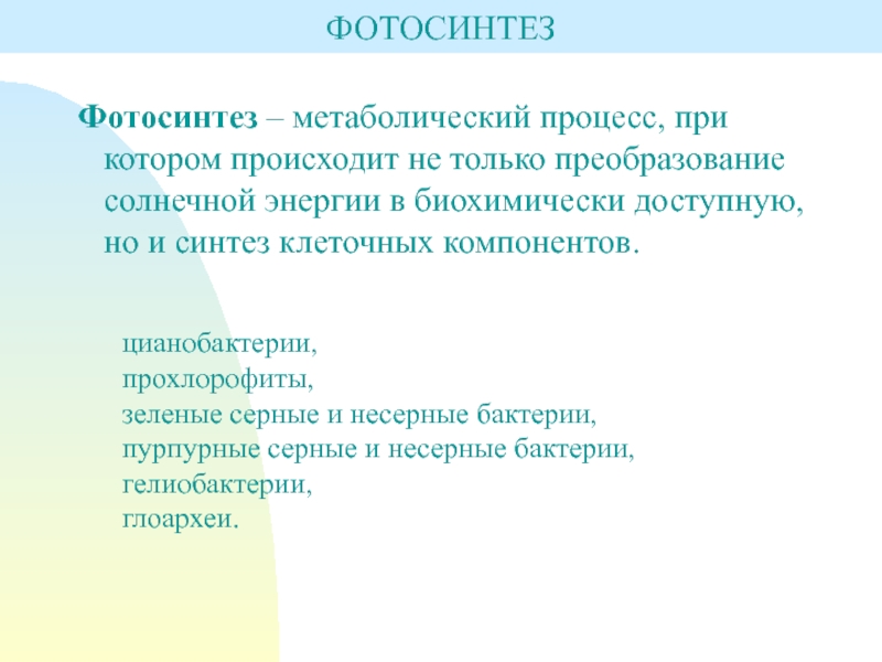 Фотосинтез – метаболический процесс, при котором происходит не только преобразование