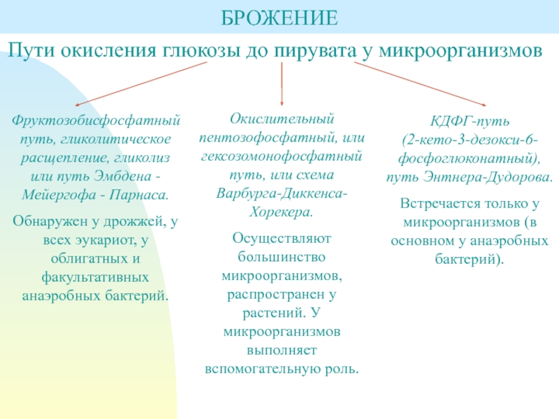 Пути окисления глюкозы до пирувата у микроорганизмов