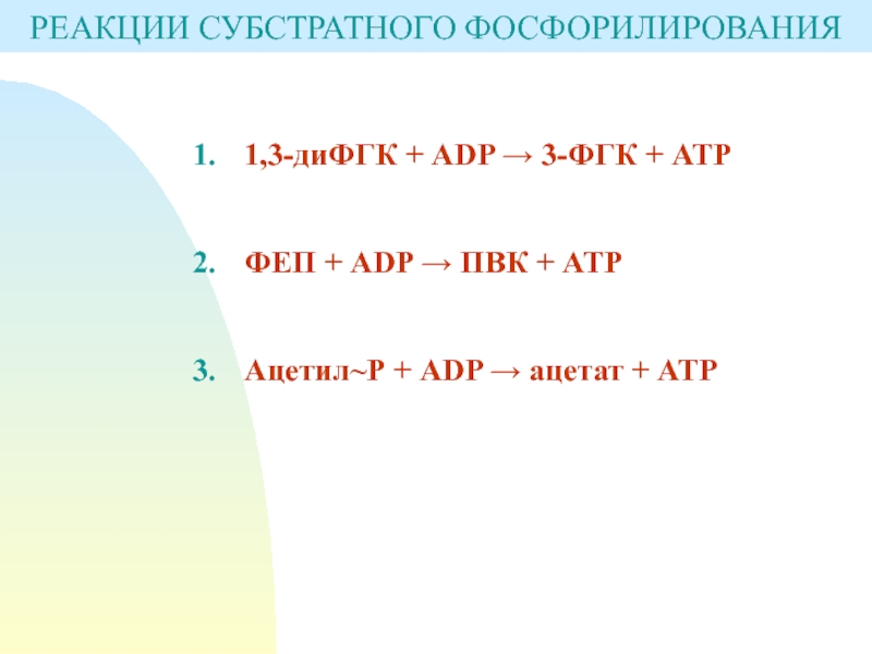 Слайд 5РЕАКЦИИ СУБСТРАТНОГО ФОСФОРИЛИРОВАНИЯ