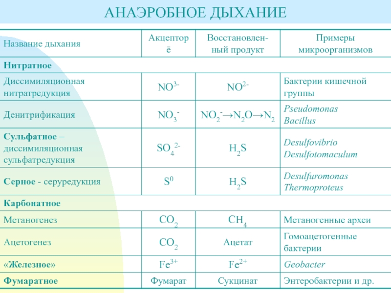 Анаэробное дыхание.