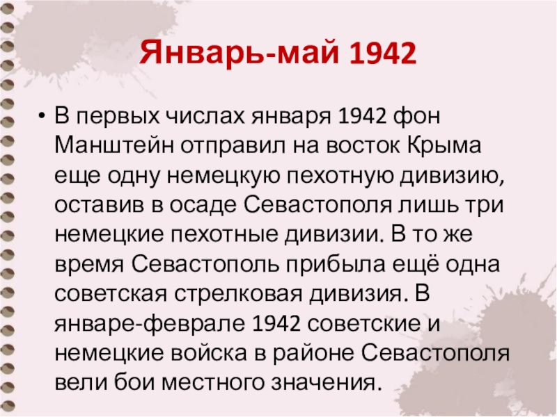 Слайд 12Январь-май 1942