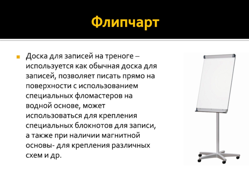 Флипчарт Доска для записей на треноге – используется как обычная доска для записей, позволяет писать прямо на