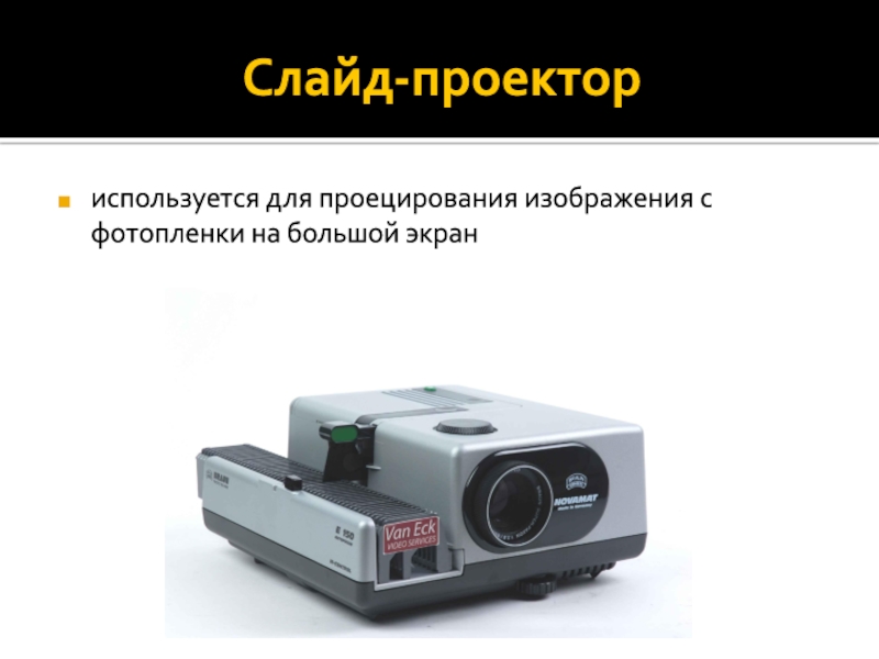 Слайд-проекториспользуется для проецирования изображения с фотопленки на большой экран