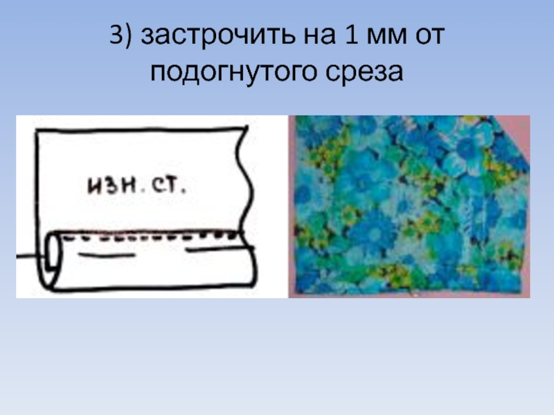 Слайд 143) застрочить на 1 мм от подогнутого среза