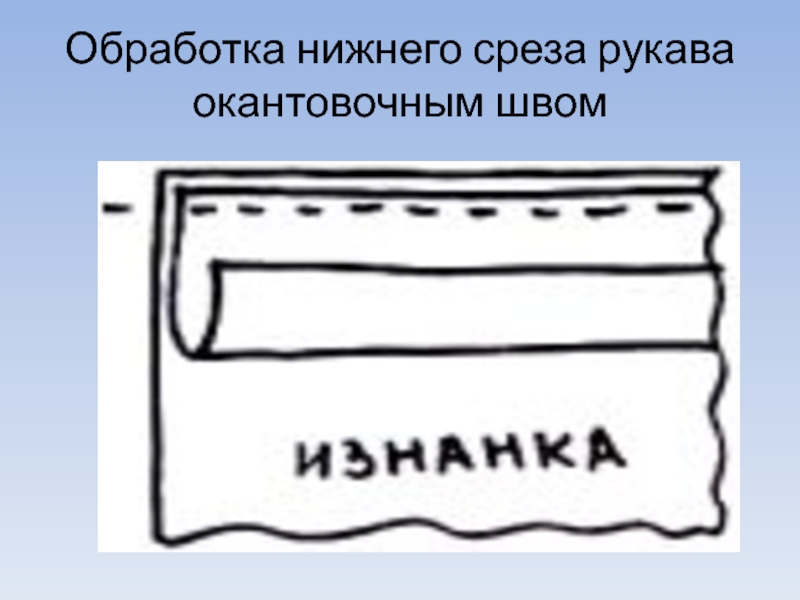 Слайд 9Обработка нижнего среза рукава окантовочным швом