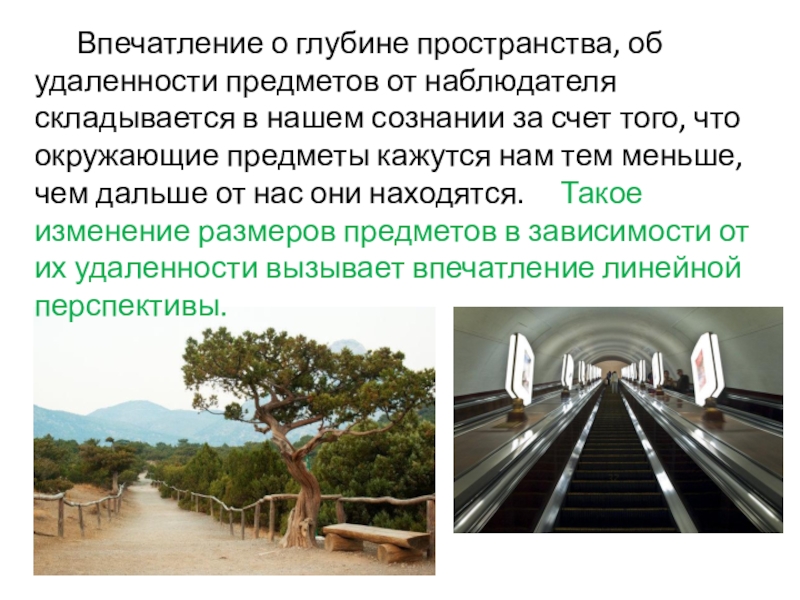 Слайд 14 Впечатление о глубине пространства, об удаленности предметов