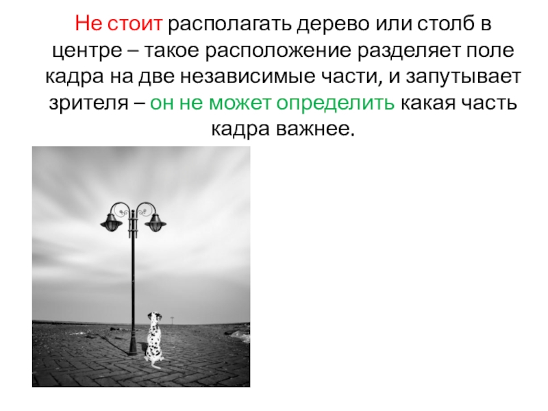 Слайд 46Не стоит располагать дерево или столб в центре – такое