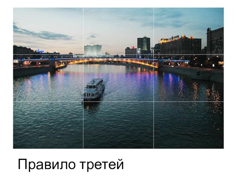 Если расположить линию горизонта по одной из этих линий, то кадр будет смотреться гармоничней.