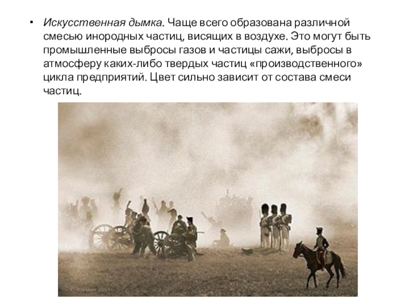 Слайд 23Искусственная дымка. Чаще всего образована различной смесью инородных частиц, висящих
