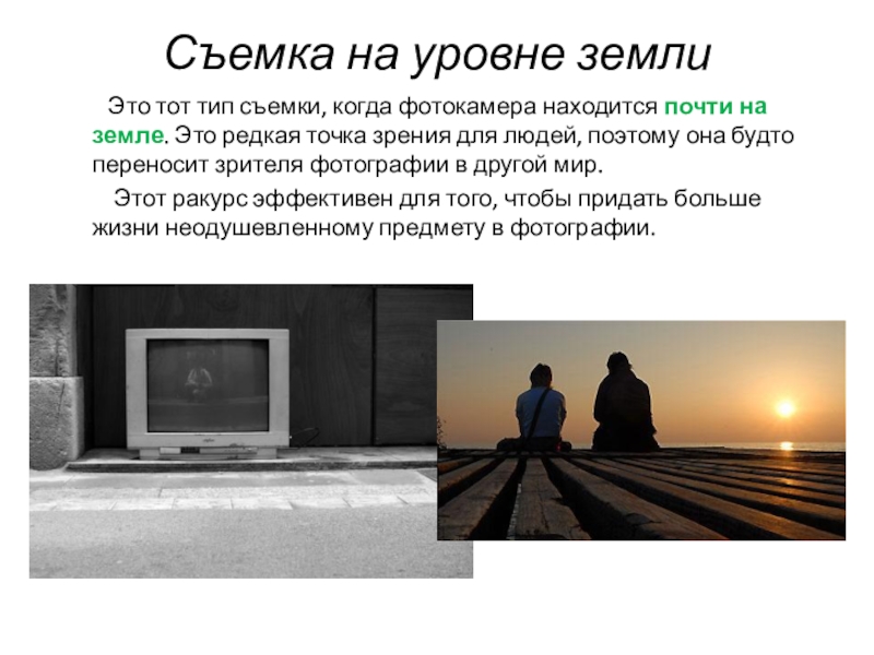 тип съемки, когда фотокамера находится почти на земле. Это редкая