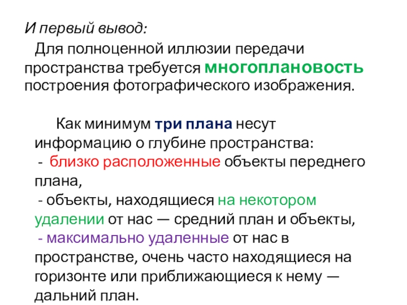 снимке передать протяженность пространства, иллюзию глубины и трехмерность окружающего нас
