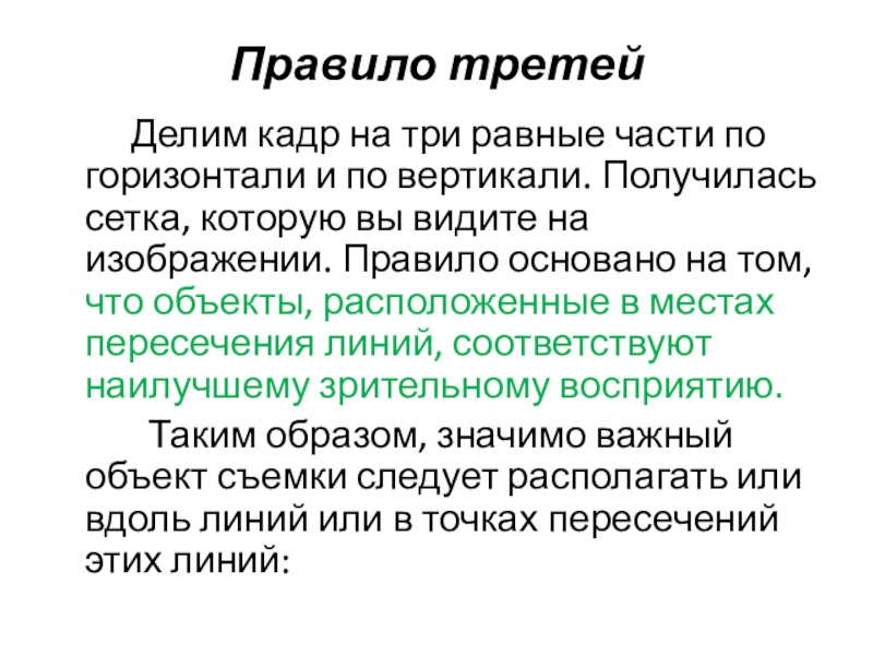 эта точка). Именно в этих зонах лучше располагать главный объект кадра.