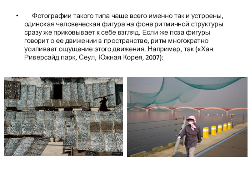 же приковывает к себе взгляд. Если же поза фигуры говорит о ее движении в пространстве, ритм многократно усиливает ощущение этого движения. Например, так («Хан Риверсайд парк, Сеул, Южная Корея, 2007):