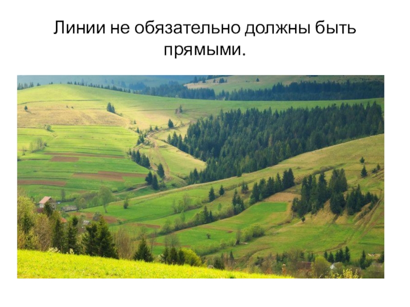Слайд 19Уходящий в глубину пространства ряд холмов явно окрашивается в голубоватый