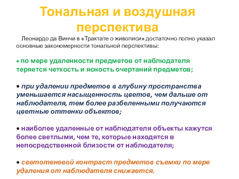 о живописи» достаточно полно указал основные закономерности тональной перспективы: