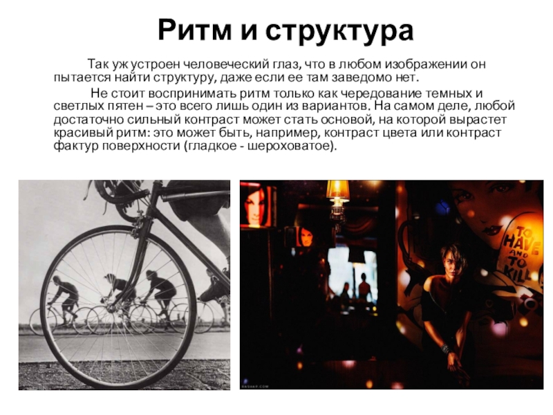 Слайд 38Визуальный ритм может передавать не только само ощущение движения, но