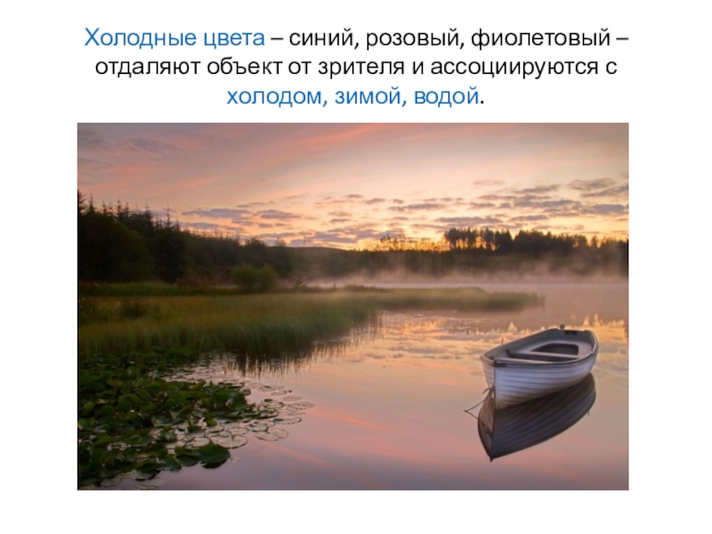 Слайд 55Холодные цвета – синий, розовый, фиолетовый – отдаляют объект от